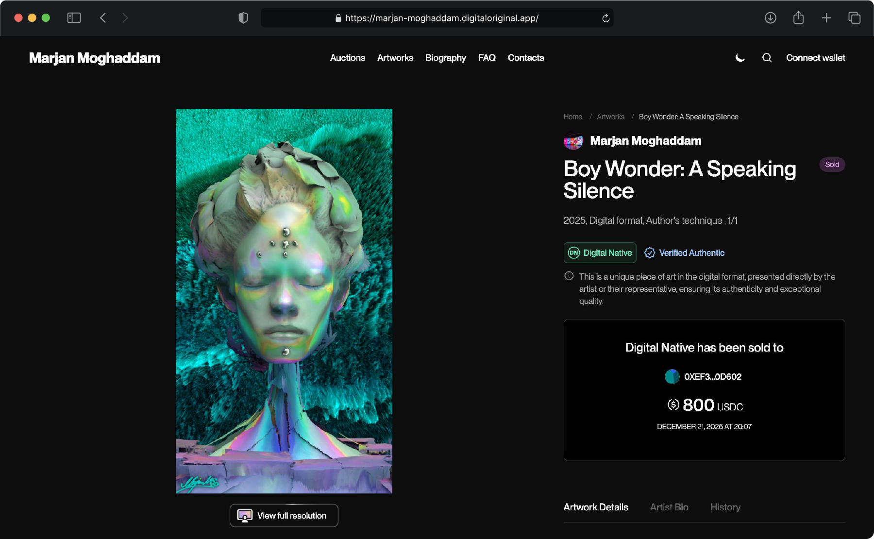 We believe artists should have immediate access to their earnings. When a collector purchases your work, the payment is processed and sent straight to the wallet address you provided during setup. There are no "withdrawal requests" or 2-week waiting periods. Your money is yours the moment the sale happens.